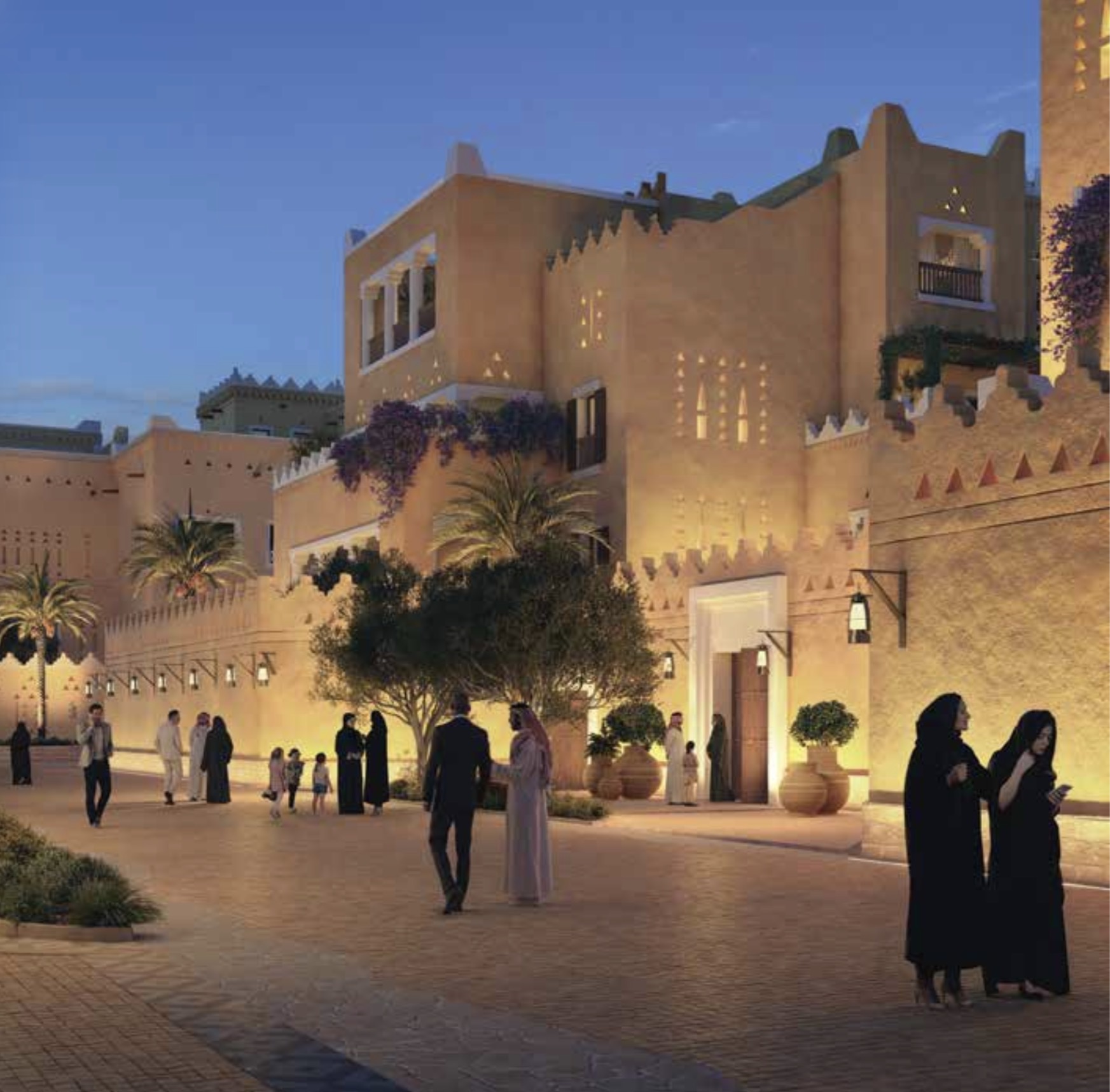 Corinthia — это коллекция из десяти частных резиденций, построенных в традиционном стиле «нахди» (najdi). Проект расположен в центре города Эд-Диръия (Diriyah), рядом с историческими, развлекательными и туристическими районами. Резиденции представлены двух типов: «садовые» и «небесные».